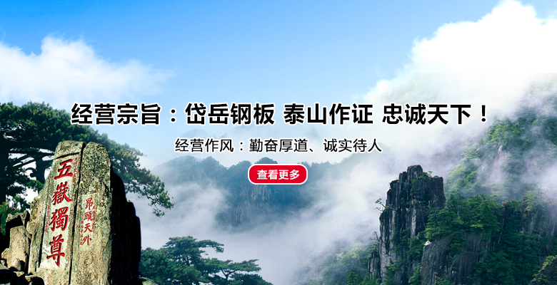 我公司位于“五岳獨尊”的泰山山麓,汶河之濱,專營Q345R,Q245R,Q370R,16MnDR等各種材質的容器板、鍋爐板,Q235B Q355B等材質的鋼板、角鋼、槽鋼、工字鋼、無縫管、焊管,兼營各種金屬材料。公司成立于1998年,已經發(fā)展了22年,與國內廣大客戶建立了良好的常年合作關系。愿與社會各界同仁攜手合作,互惠互利,謀求共同發(fā)展,愿繼續(xù)為新老客戶提供更好的產品和服務。總經理雷印金歡迎各界朋友到東岳泰山考察觀光!公司經營作風:勤奮厚道、誠實待人。公司經營宗旨:岱岳鋼板、泰山作證、忠誠天下!